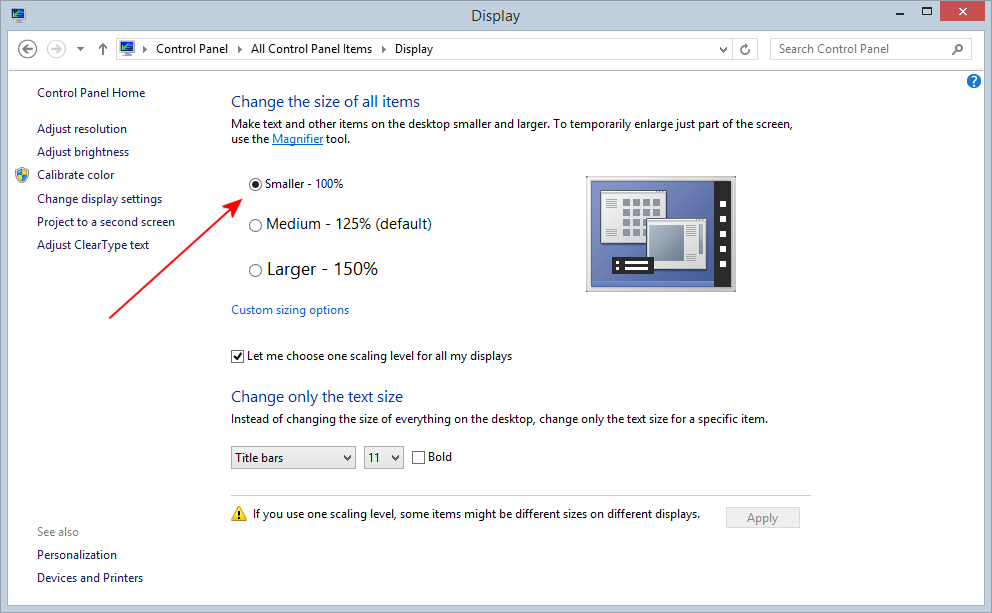 Note: The Validation and Design to Cost tabs work best when your Windows screen resolution is set to “100%” or “Smaller”. The details for accessing this setting can vary between Windows versions, but in general it can be found in the “Display” window of the Control Panel: