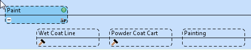 3 Click the + symbol on each intermediate node to expand it into distinct surface treatment processes. For example, the Painting Processes node expands into three distinct painting processes: a Wet Coat Line, a Powder Coat cart-based process, and a generalized Painting process that can be used to represent any painting process based on cost per surface area.