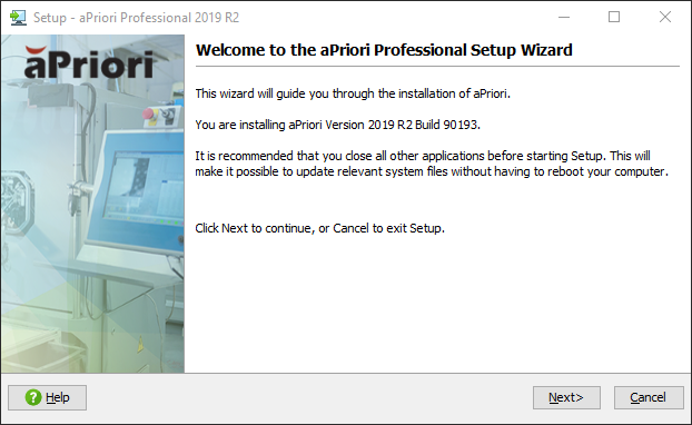 To begin the installation process, press Next. To instead exit Setup, click Cancel.