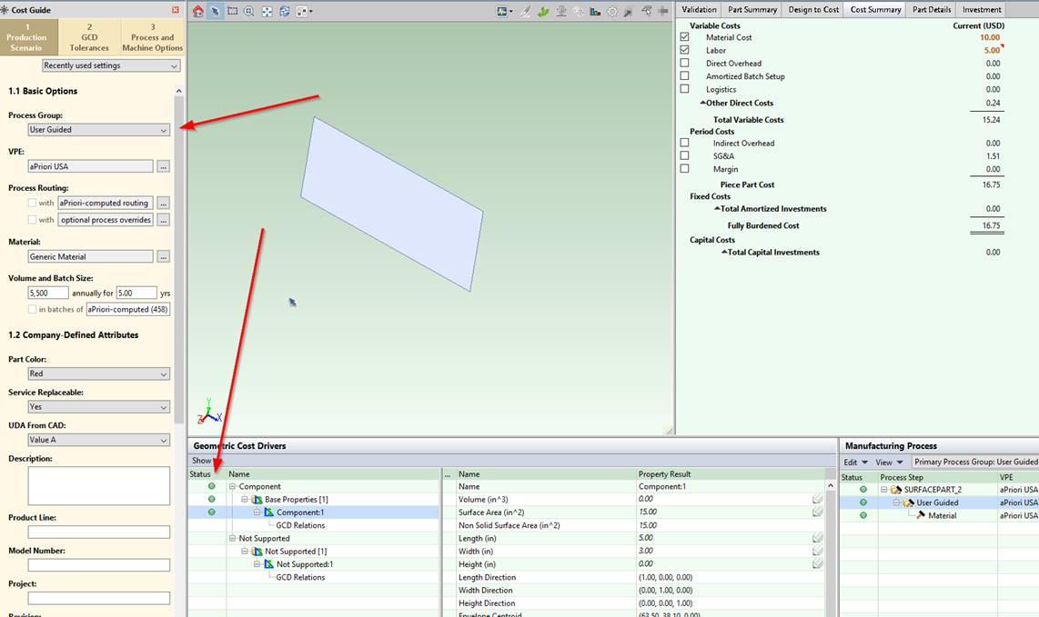 So how do these property settings translate to what you actually see on your screen? Here are two common settings and how they affect costing in different process groups.