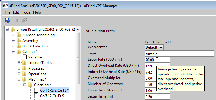 Note: Do NOT edit the Cost Model Version without the support of aPriori Professional Services or aPriori Support. Editing the version changes the VPE’s process and cost logic and may change the behavior of your specific VPE (that is, changing the cost model version can modify the VPE configurations and cost model extensions made by your organization).