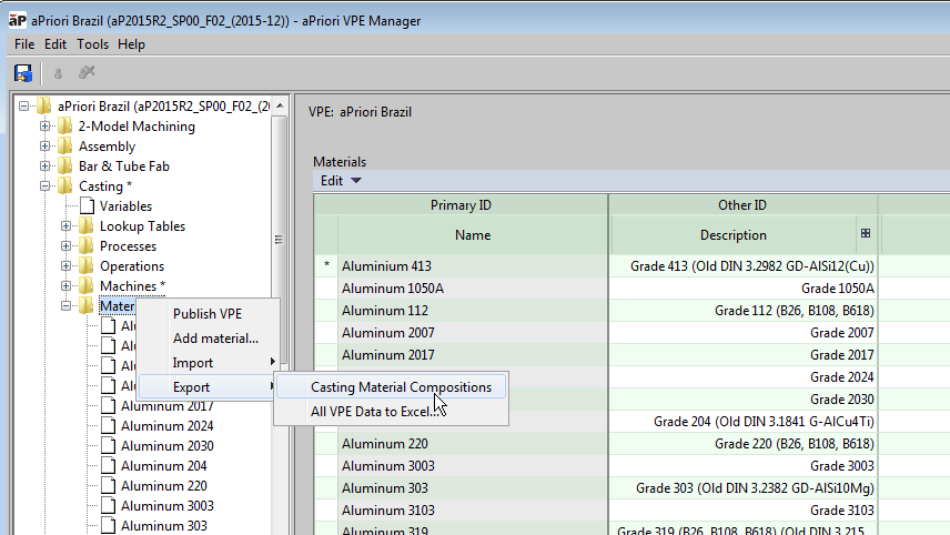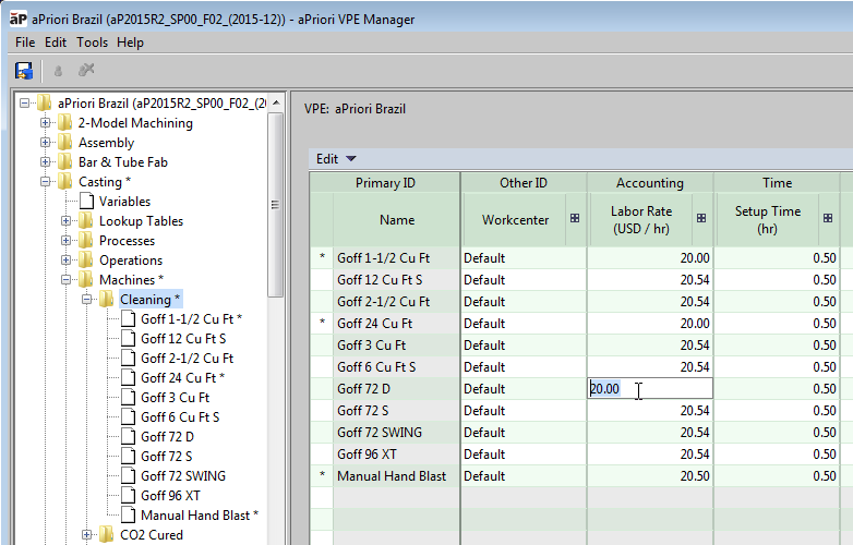 The aPriori VPE Manager supports several ways to edit VPE data. You can:
