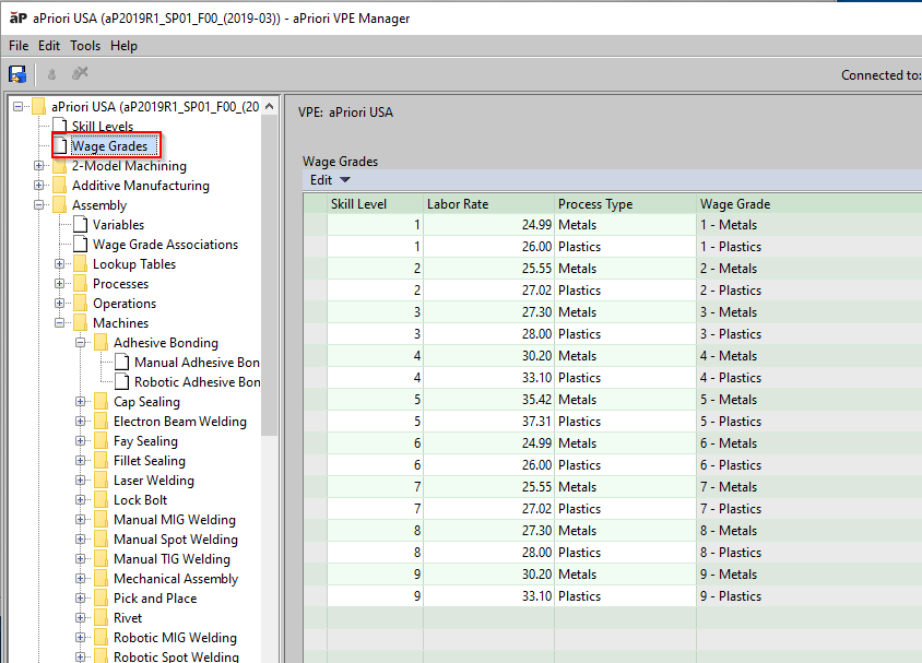 Click Wage Grades in the navigation pane of the VPE Manager.