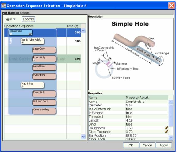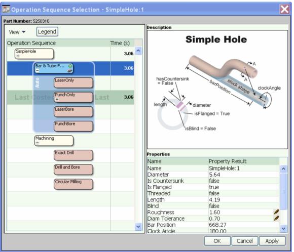 Alternative node is an expandable node representing a choice between two or more alternative operations. Each alternative operation represents a separate sequence. aPriori automatically selects a sequence for costing, but you can manually select a different alternative. Only one sequence can be selected.