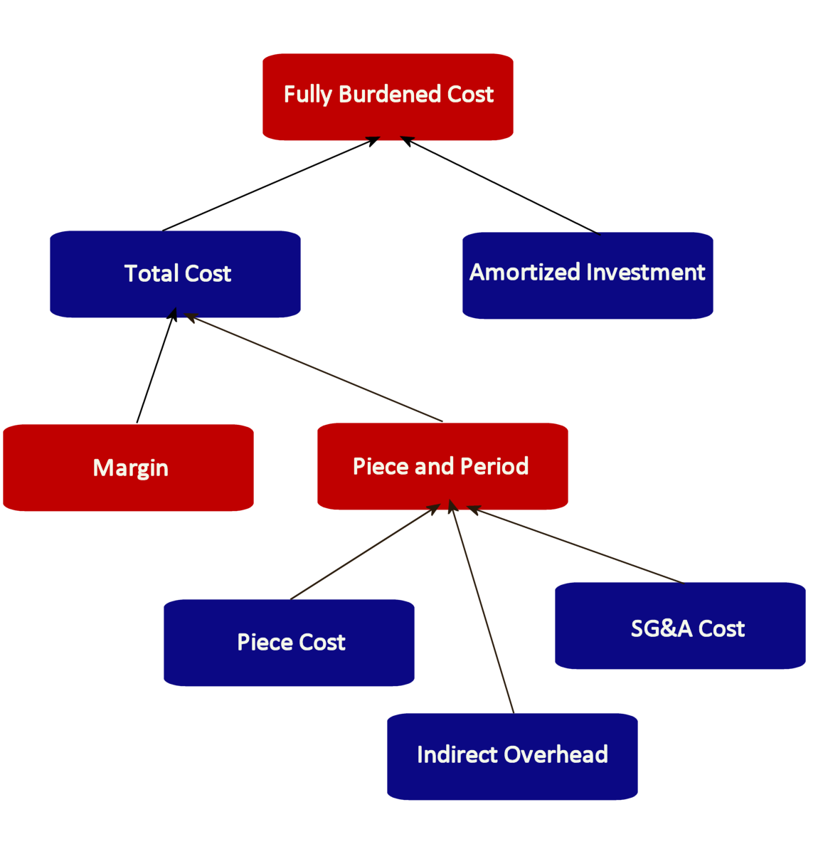Fully Burdened Cost per Part = Total Cost + Amortized Investment
