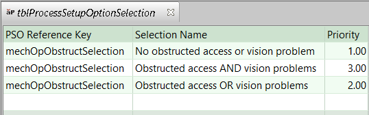 rocessSetupOptionSelection lists the possible settings; the entry with 1 in the priority column provides the default for both setup options.