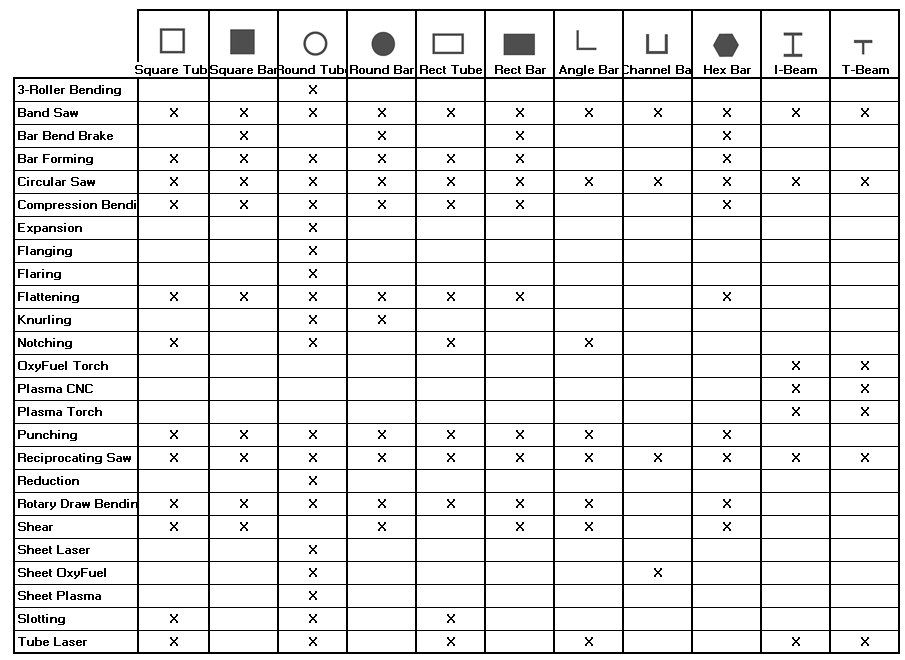 o CTL/[Punch]/[Bend]: Performs cutting with a saw or shear, followed by optional punching, bending, trimming, and/or forming.
