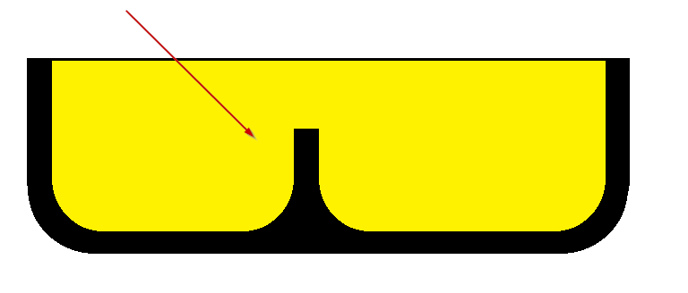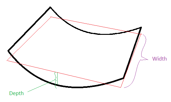 Curved-bottom pockets are recognized provided they are sufficiently flat. A pocket bottom is considered sufficiently flat if, roughly speaking, its depth-to-width ratio is less that the value of the site variable maxCurvedFloorPocketWidthDepthRatio (0.1 in starting point Digital Factories). Here, width is the SER width of the bottom surface, and depth is the maximum distance from the surface to its best-fit plane.