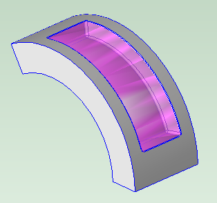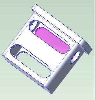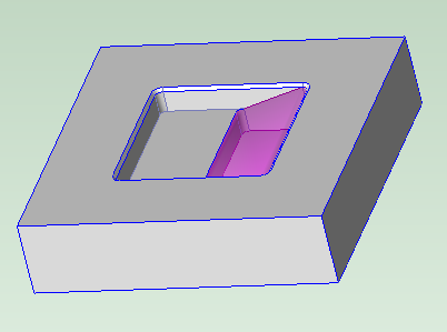 The purple volume in the image below is one of four identical through pockets. The walls must be parallel for a through pocket to be recognized.