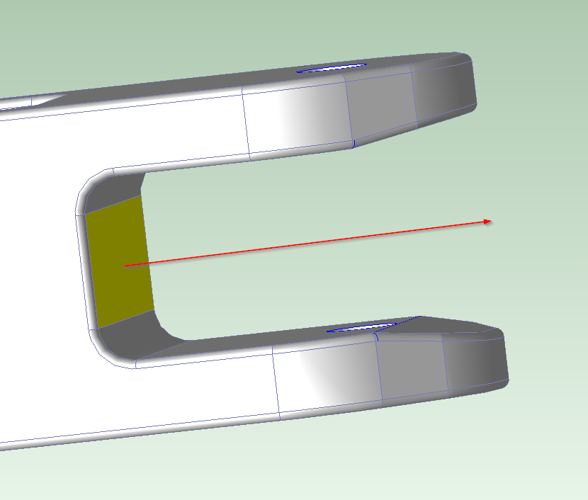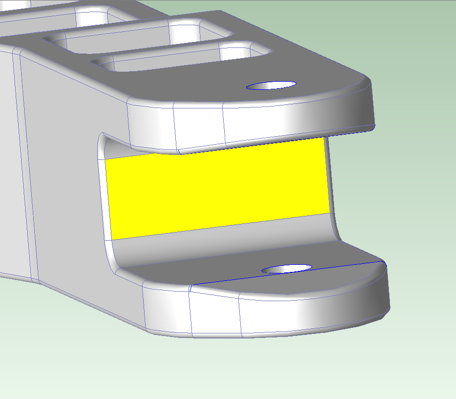 The following illustration shows a planar face (in yellow) to which it is appropriate to assign Mill Grooving: