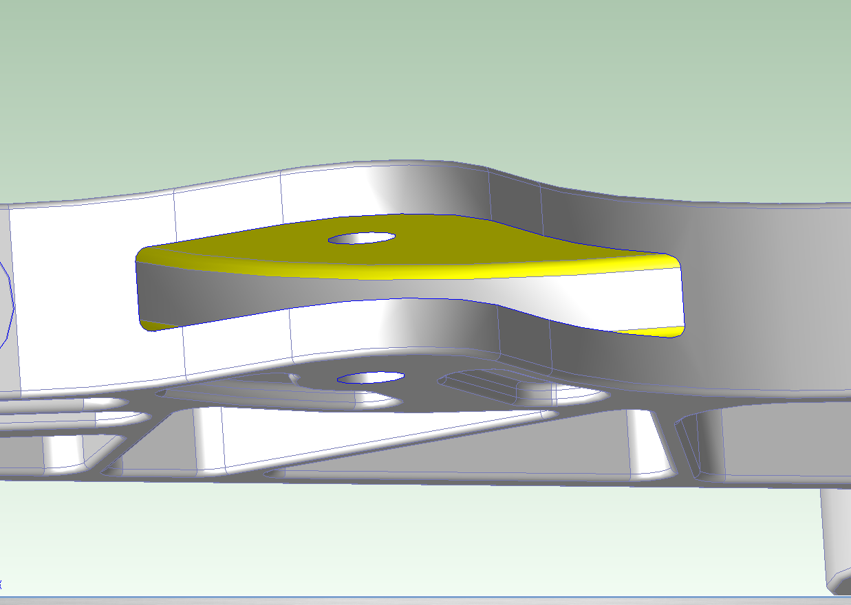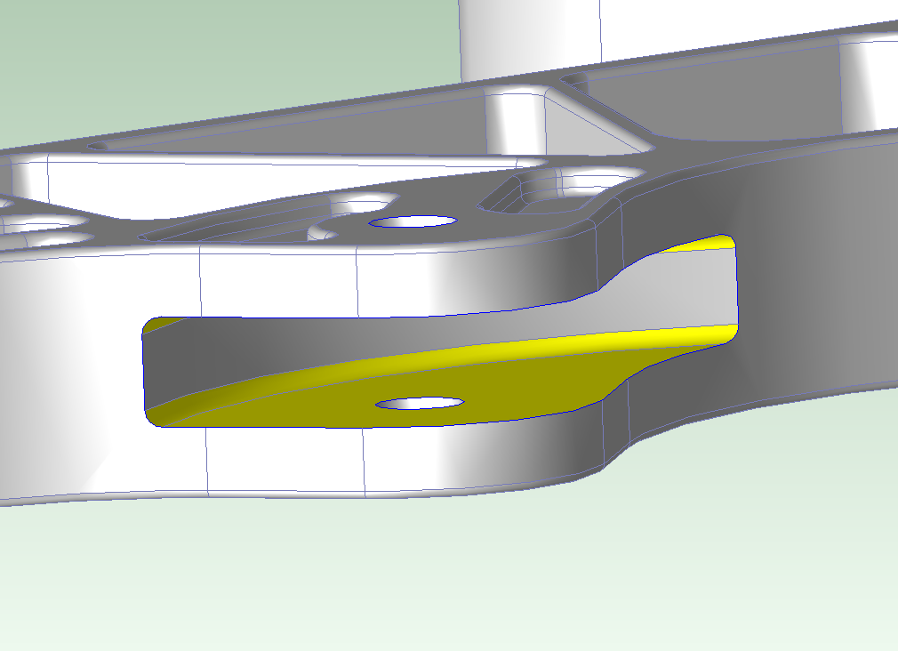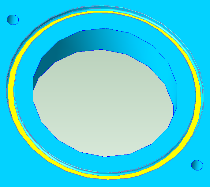 Given the assignment of Undercut Milling to the planar face as shown above, the following illustrations show the surfaces (in yellow) to which it is appropriate to assign No Cost Feature, since these surfaces will also be created by the Undercut Milling operation: