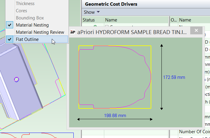 aPriori provides two alternative methods for determining the outline of the flattened part, finite element analysis (FEA)-based flattening and geometric flattening: