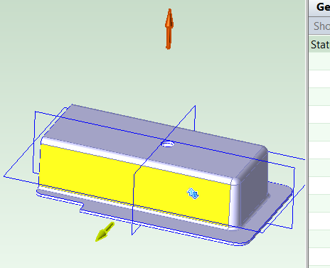 When you hover over a flat or cylindrical surface, the Viewer highlights the surface, and a yellow arrow indicates the candidate ram direction associated with that surface.