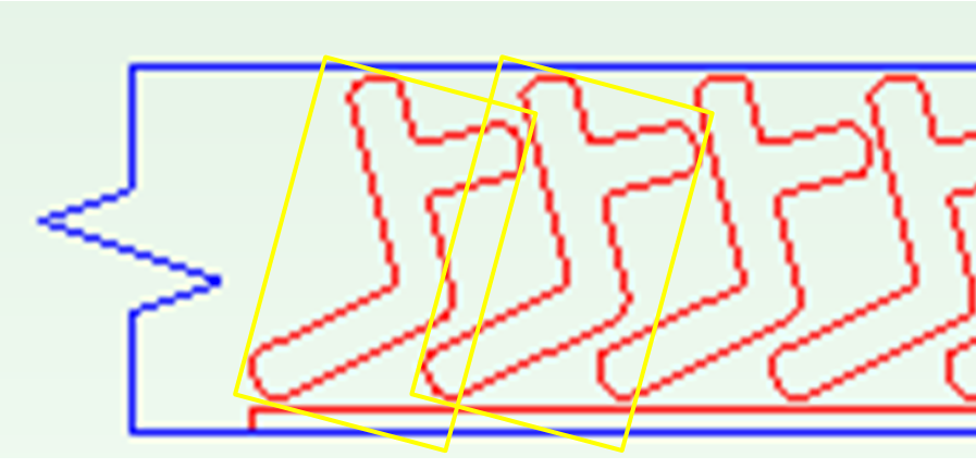 The figure below shows nested Blanks oriented on the stock coil. The Blank SERs are shown in yellow.