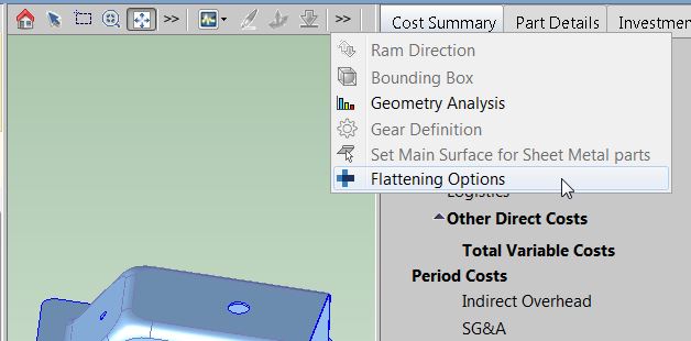 For a given part, you can override the default flattening method, or configure FEA flattening, with the Flattening Options dialog, which is available from the Viewer toolbar.