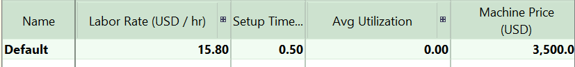 The aPriori starting point Digital Factories define a single machine for this process.