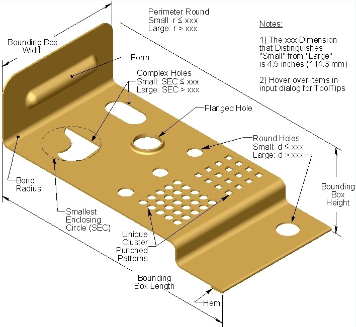 3 Open the Sheet Metal PG node in the Process and Machine Options tab of the Cost Guide. Supply a nonzero value for all the following required PSOs: