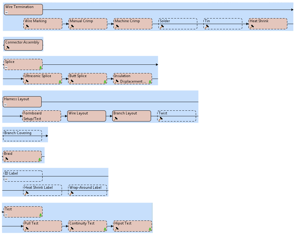 The Assembly Process Group routing for wire harness are summarized in the following illustration: