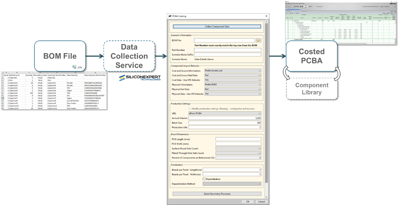 To cost a PCBA, aPriori requires these inputs: