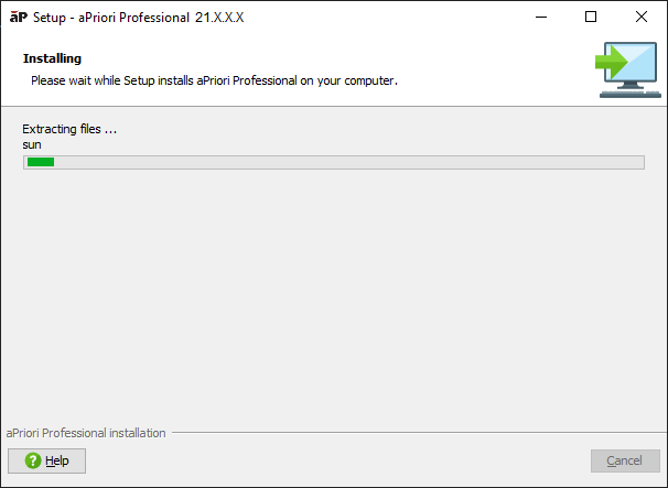 WARNING: If you are installing to a preexisting directory that you chose to Clean and continue, you cannot cancel the deletion of the directory files or the installation of aPriori Professional while it is in progress.