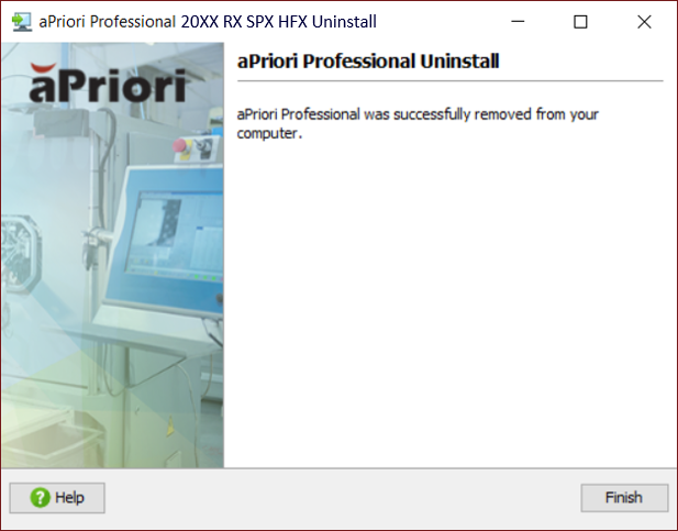 This screen appears when the uninstaller is done. Click Finish to delete any remaining files and close the installer.