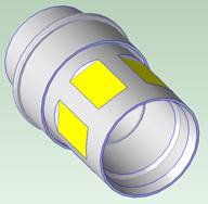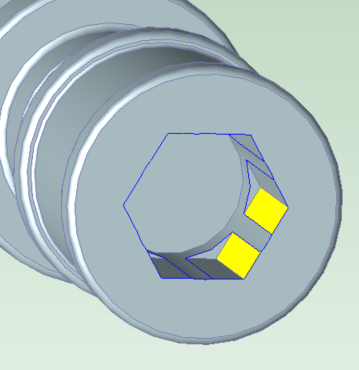 Polygon GCDs are extracted even when the facets of the polygon are interrupted by other part geometry. For example, a symmetric pattern of flats on a cylindrical shank will be extracted as a Polygon (as shown in picture above left). Internal polygons will be recognized even when the facets of the polygon are interrupted by the walls of a hole also centered on the part’s turning axis; in this case aPriori will recognize both the Hole GCD and a Polygon GCD, since typically these internal polygons are made by feeding a rotary broach into and enlarging a pre-existing round hole. The Polygon GCD properties include whether it is an internal or external feature, the Number of Facets, the axial Length of the polygon, and the Volume machined from the in-process part to make the polygonal feature.