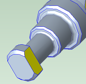 • aPriori now will extract a Polygon GCD to represent both external and internal polygonal features that are machined into round bar stock. Internal Polygon GCDs also will be extracted on other stock types. To be recognized as a polygon, internal features must have 3 or more symmetric planar faces, or “facets” centered on the part’s turning axis or another hole. Internal features also must be smaller than a specified threshold or will be extracted as a Pocket GCD rather than a Polygon GCD. (This threshold is set to 15 mm in the baseline cost model and is controlled with the site variable idPolygonMaxEnclodedCircleDiameter). External features with 2 or more symmetric facets centered on the part’s turning axis may be recognized as a polygon. Some examples of geometry now recognized as polygons are shown in these figures.