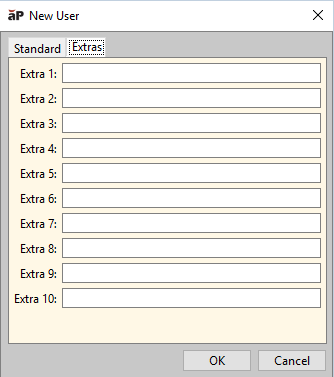 3 (Optional) Click the Extras tab if you want to define up to ten Extra user fields.