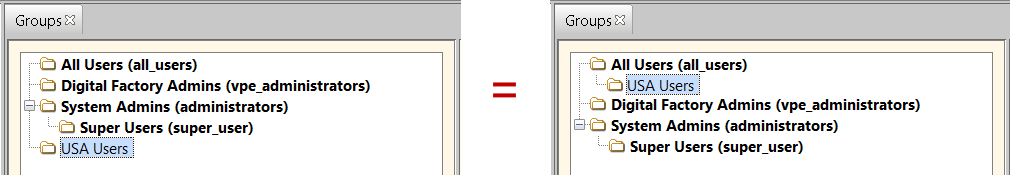 These system-defined groups cannot be deleted, though the permissions associated with them can be edited. Note that all users (including members of the "System Admins" and "Digital Factory Admins" groups) are members of the "All Users" group.