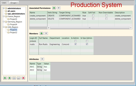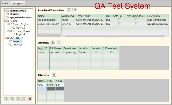The USA_Region, USA_Region\Project1, and USA_Region\Project2 Groups in the production system have the same Permissions and Attributes as they did in the QA system. The members for these groups are unchanged (they do not match the members from the QA system). In particular for the USA_Region\Project1 group detailed in the screen shots above, this group in the production system after import will: