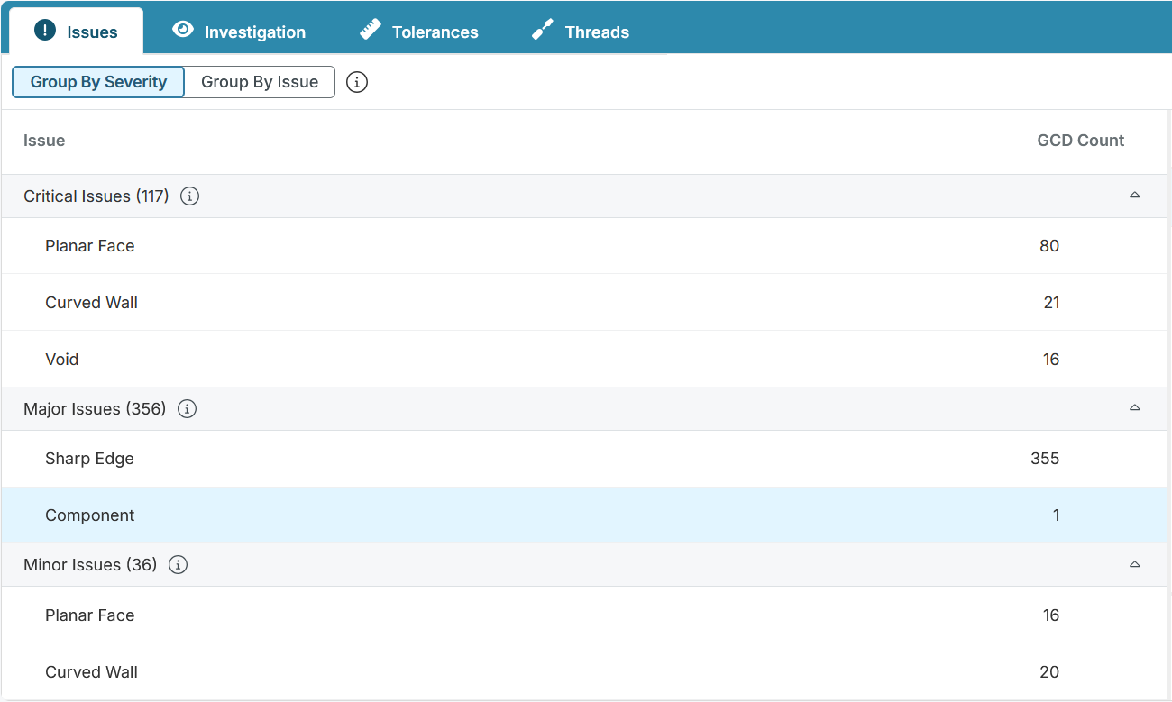Tip: In the Design Guidance tile, the GCDs with Tolerances value is the number of GCDs that already have at least one tolerance.