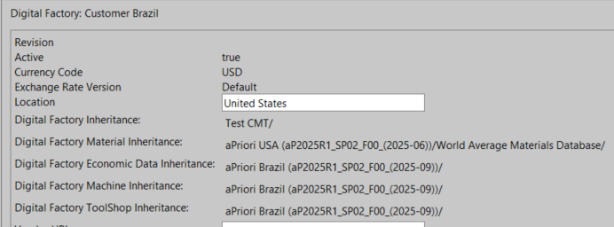 If you are creating a new overlay Digital Factory for a WORLD AVERAGE region, aPriori recommends establishing an inheritance structure to a Materials Digital Factory that uses the WORLD AVERAGE pricing scheme from 2025-09.