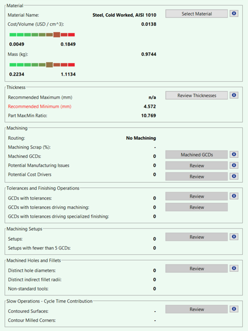 aPriori 2025 R1 SP2 provides Design For Manufacture and Design To Cost feedback in the Forging process group.