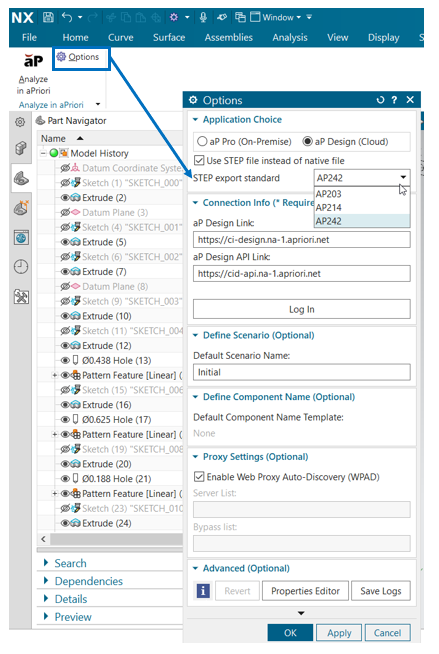 The NX and Inventor plugins co-released with aPriori 2025 R1 SP2 provide the ability to export the CAD model to the STEP AP242 format.