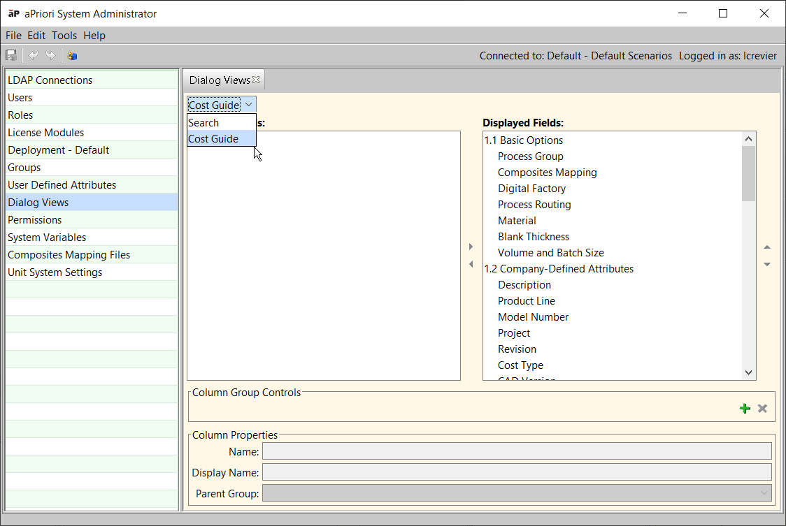 System Administrators can customize the organization of Production Scenario tab of the Cost Guide.