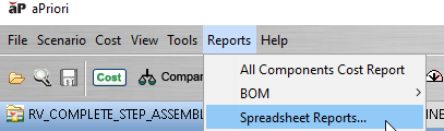 Export this to Excel by opening the relevant comparison report in aPriori and then selecting the Cost Comparison Report from the Spreadsheet report list: