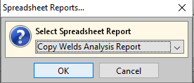 This report is automatically generated when you run a Copy Welds From operation, and you can also generate it manually, by selecting the Copy Welds Analysis Report from the list of spreadsheet reports: