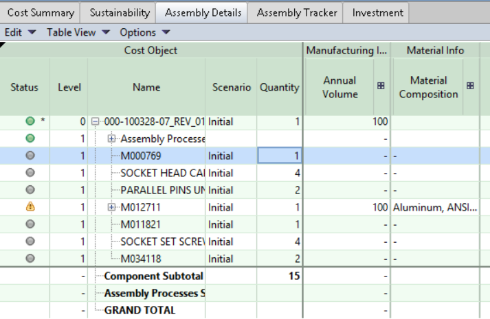 Tip: See View Assembly Details for more details of assembly-specific information.