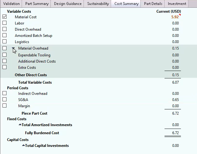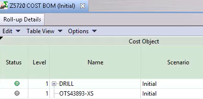 Before you can analyze (cost) a roll-up, each component must be costed.