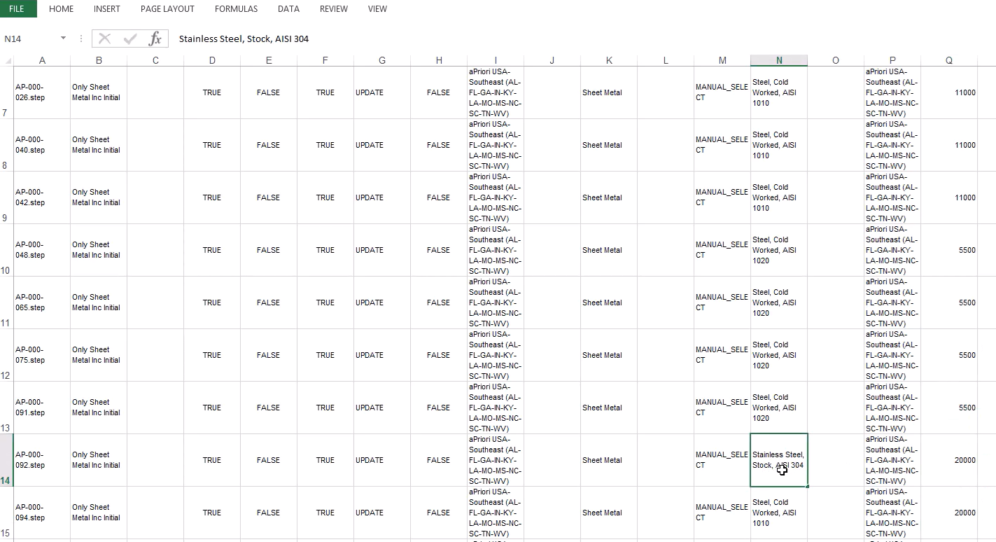Note: Material names in the spreadsheet must exactly match the material names in aPriori.