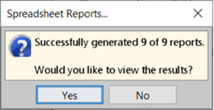 Click Yes to view the report or No to close the window without viewing the report.
