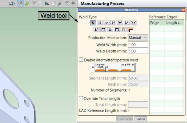 - Override Total Length: By default, aPriori automatically calculates the length of a weld, and displays this value in the CAD Reference Length field.