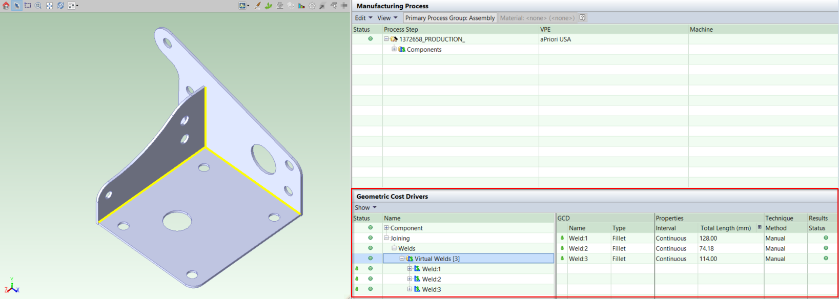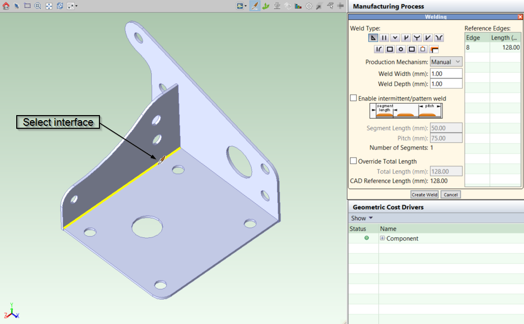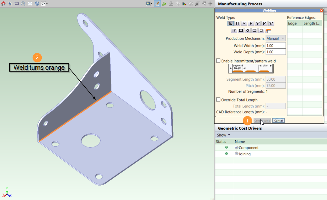 The welds now appear in the Geometric Cost Drivers panel.
