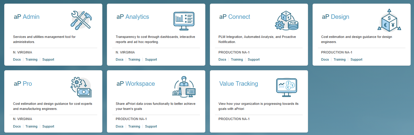 Users with the APRIORI_EXEC_SPONSOR role or the aP Project Lead enablement can access the dashboard directly from Cloud Home.